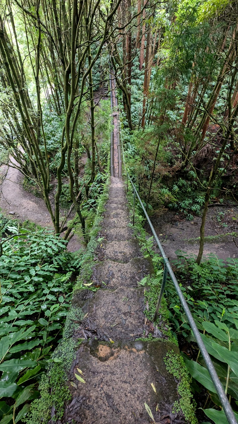 Na pierwszy azorski szlak ruszyłam z miejscowości Lagoa, skąd poszłam trasą w stronę Janala do Inferno. Definitywnie jeden z moich ulubionych szlaków, może dlatego, że przed wyjazdem grałam w Tomb Raider. Najpierw wąska ścieżka między liśćmi dzikiego imbirowca, który uważany jest na Azorach za gatunek inwazyjny, ale za to jaki ładny! Później trochę pastwisk, które przywołują na myśl jakąś, hm, Szwajcarię? I to wszystko przyjemne kończy się przed barierkami prowadzącymi do tunelu. To takie miejsce, że zastanawiacie się, w którym momencie zboczyliście ze szlaku, jak nie było tu żadnej innej drogi, i myślicie sobie: "No bo chyba nie do tego tunelu, nie?!". To do tego tunelu właśnie. Mam już jakieś doświadczenie po maderskich kanałach, ale jednak tam było widać początek i koniec, a tutaj idzie się tylko z latarką, z każdym krokiem przyspieszając, żeby jak najszybciej zobaczyć światło dzienne. A tym tunelem przeprawia się do zupełnie innego świata. Takiego, gdzie chodzi się wąskimi, dżunglowymi ścieżkami, skacze po rurach i próbuje nie pogubić na szlaku, który robi skomplikowane pętle. A potem znów przechodzi się przez tunel i wychodzi do spokojnego świata pastwisk. Magiczne. Ja natomiast chciałam wydłużyć sobie wycieczkę do Lagoa do Fogo, czyli jednego z najbardziej ikonicznych miejsc na Sao Miguel. Przerwała mi niestety burza, która pojawiła się totalnie znikąd i zmusiła do ratowania się ucieczką pierwszą dostępną drogą w dół. Tak przy okazji zwiedziłam sobie Agua de Pau. Miłe miasteczko.